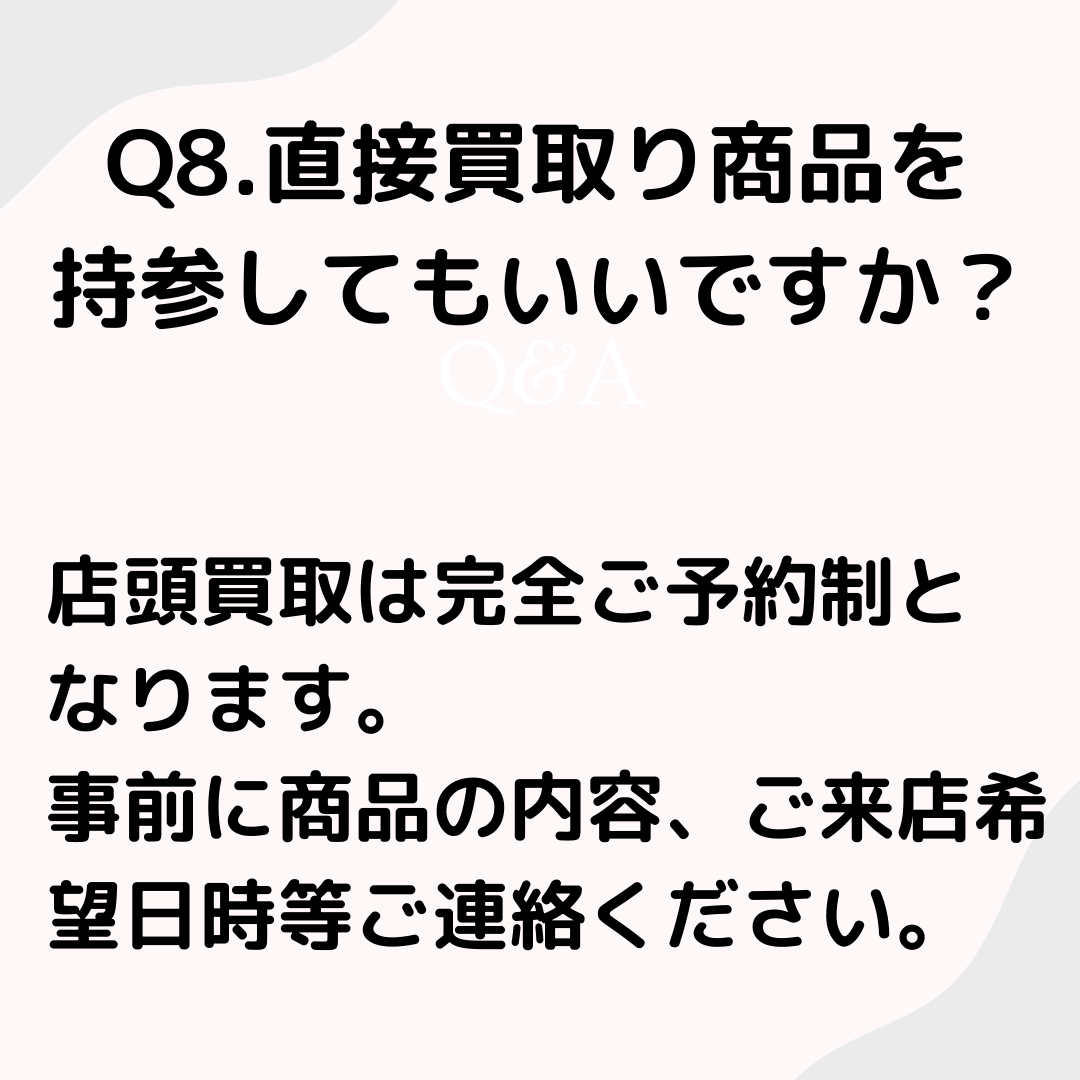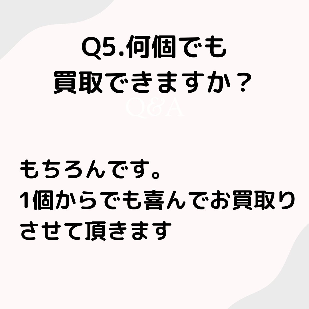 2、箱潰れなど無いように梱包お願いします。お受け取りした商品が破損していた場合、減額となることがございます。その場合、速やかにお客様にご連絡し、減額の価格で再見積後でのお取り引きか、ご要望に応じて返品させていただきます。減額でも同条件ではどこよりも高く見積もりいたしますのでご安心してスグにお送りください。