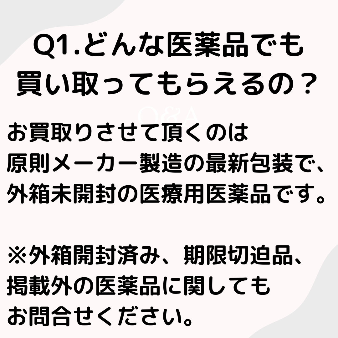 ※医薬品の買取価格は、未使用、未開封品、メーカー製造の最新状態で、現行の有効期限、現行の新包装での条件となります。
