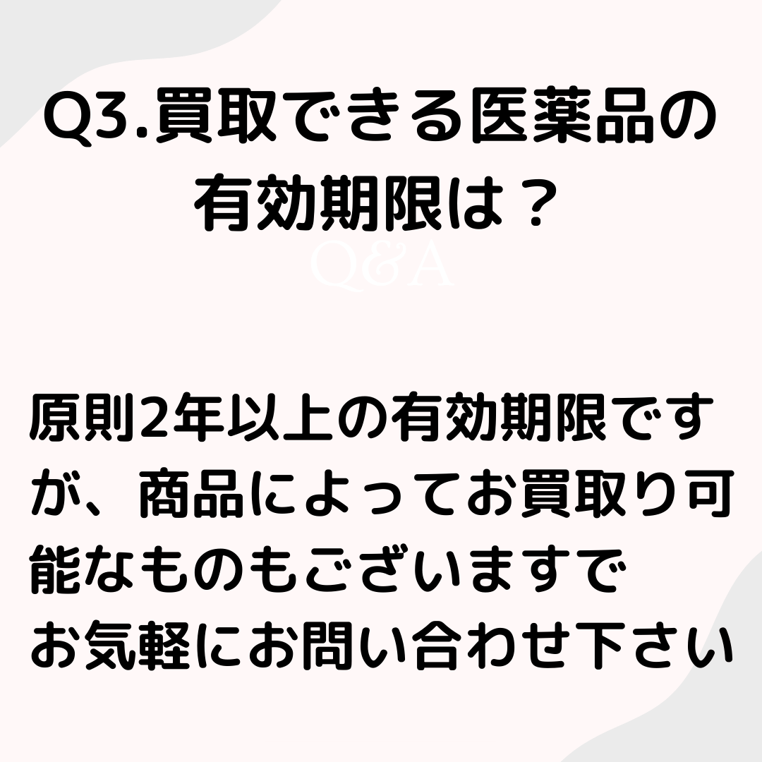 1、お買取させていただく医薬品は原則として、未使用、未開封品、メーカー製造の最新状態で、現行の有効期限、現行の新包装での条件となります。見積価格やお取引方法の詳細の確認は、薬PAY公式サイトや各種お問合せから可能です。