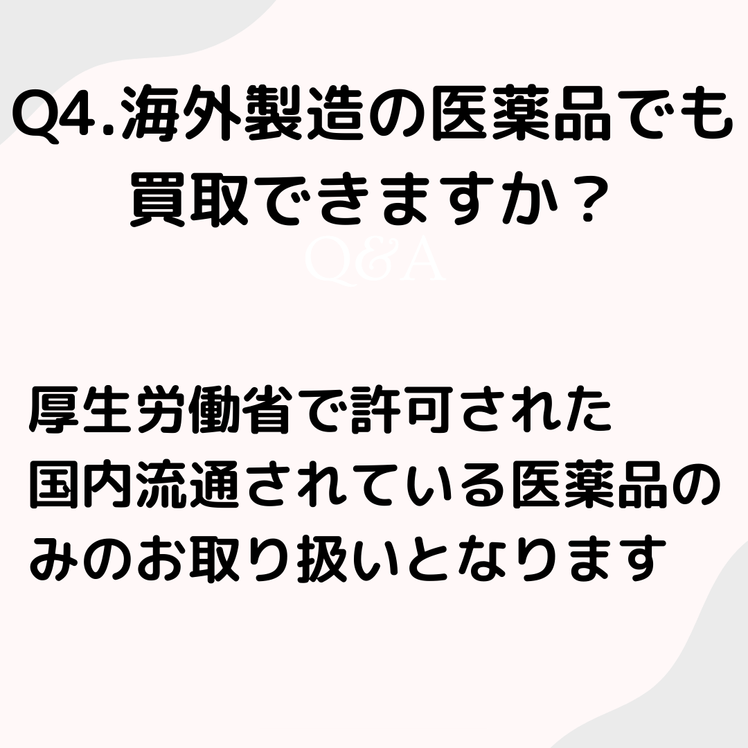 6、ジェネリック医薬品、外箱開封済みジェネリック医薬品もお買取り可能です。注射薬の外箱開封品はお取扱しておりません。)